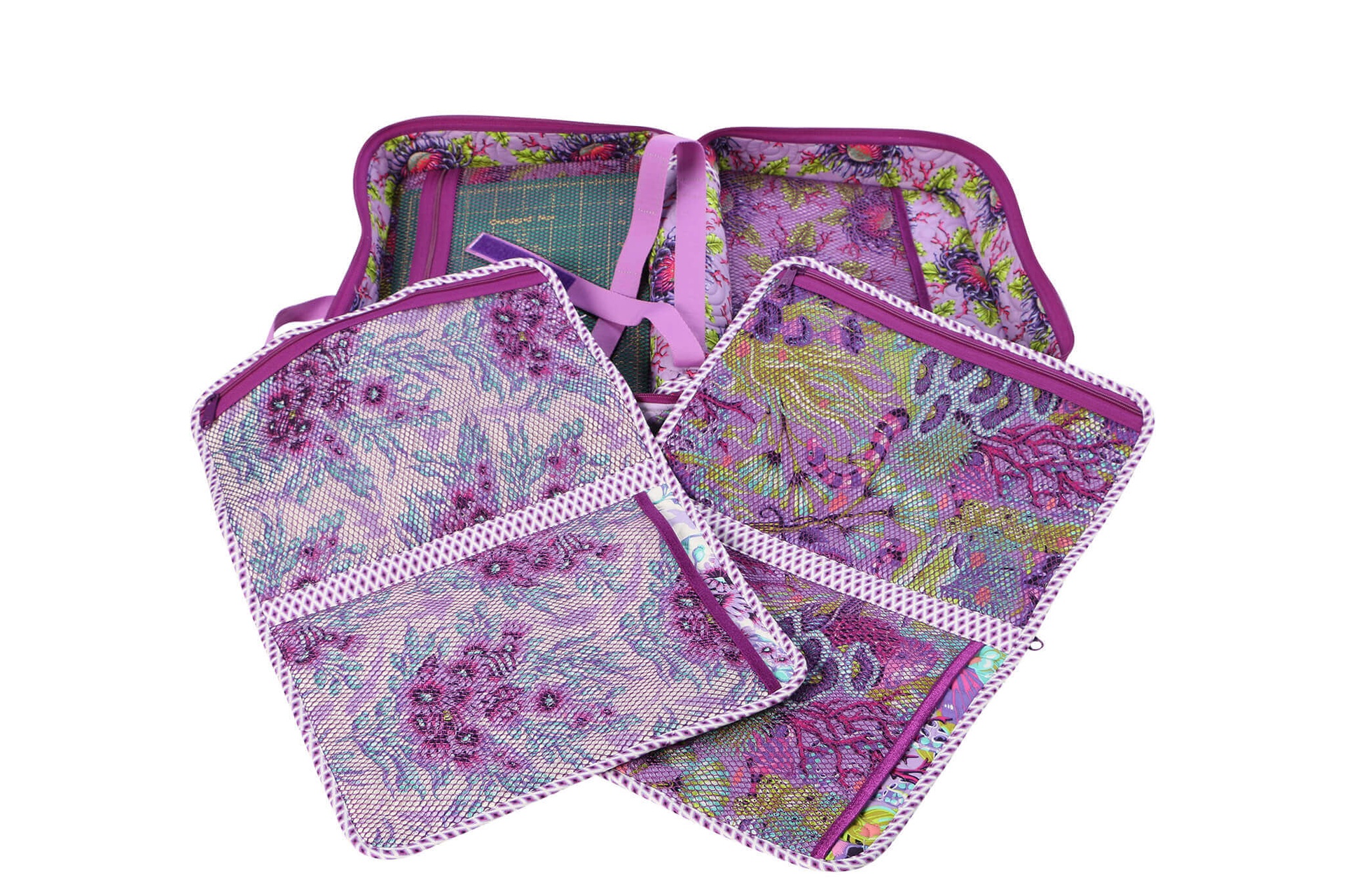 Model 12 - Travel Duffle Bag 2.0 - Brown circles with black stripe trim, Spirit Rhythm - Earth, Island Batik
